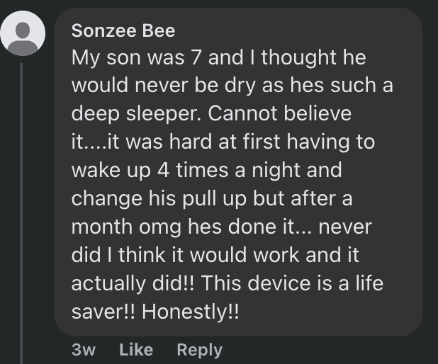 That’s why we created the DryNights Wireless Bedwetting Alarm. It gently detects the very first sign of moisture and wakes your child just enough to use the bathroom. Over time, their brain begins to connect the feeling of a full bladder with waking up — leading to natural, lasting nighttime dryness without stress, medication, or pressure.